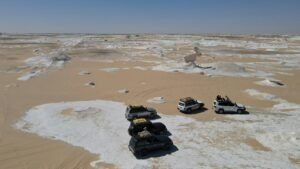 Après le déjeuner, vous découvrirez Ain Khadra et le site de Santta, avant de rejoindre le fabuleux Désert Blanc.